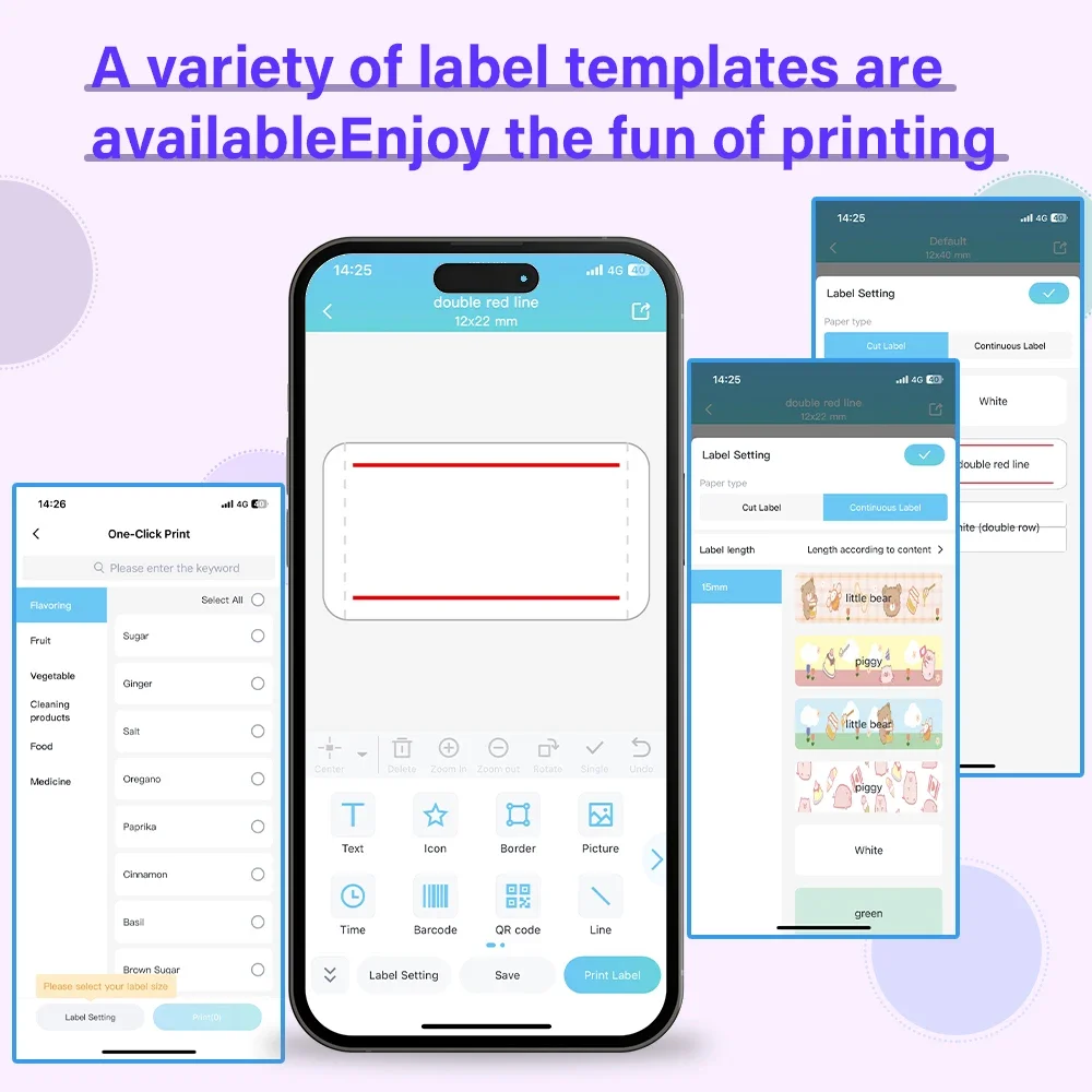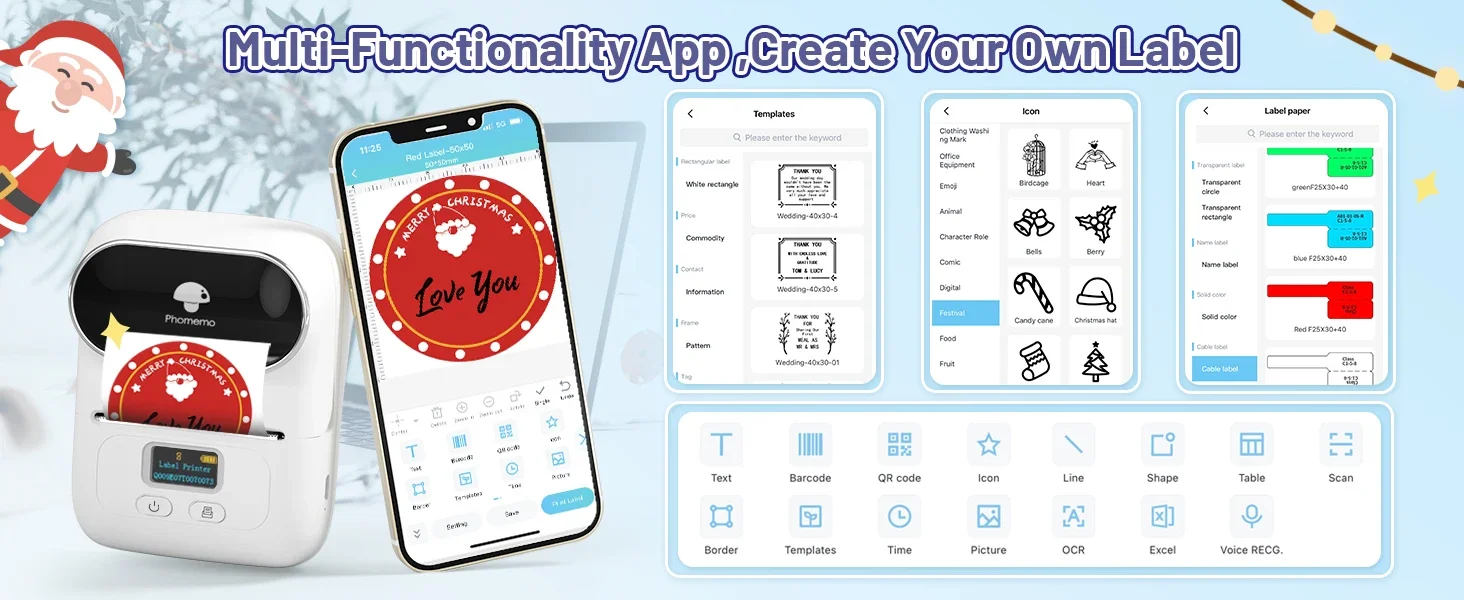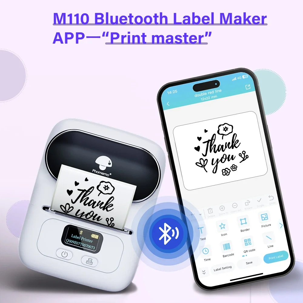 Poderosa APP- Phomemo-M110 Máquina fabricante de etiquetas Bluetooth com todos os modelos de etiquetas gratuitas e pode configurar seus próprios modelos. Você pode editar e criar rótulos, suportando a impressão em lote do Excel para melhorar a eficiência do trabalho.
