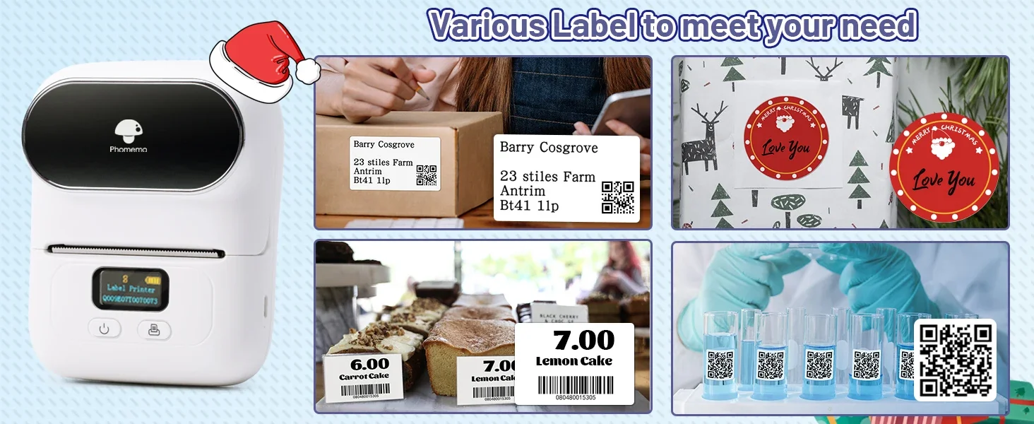 Economize dinheiro e tempo-A impressora térmica de impressão em preto e branco elimina a necessidade de tinta ou toner caros, editou sua etiqueta no aplicativo "Print master", conecte com um clique e imprima. Um bom assistente durante o Halloween, Ação de Graças e Natal.