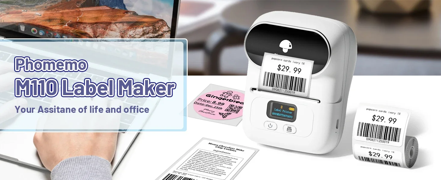 Impressão de etiquetas facilmente-Phomemo-M110 fabricante de etiquetas térmicas tem mais de 300 modelos no aplicativo, você pode facilmente imprimir qualquer etiqueta: etiquetas de roupas, etiquetas de preços, etiquetas de cabo, etiquetas de jóias, etiquetas de endereço, pastas e assim por diante. A escala da largura do Phomemo-M110 Label é 20mm ~ 50mm. Não para etiquetas do transporte.
